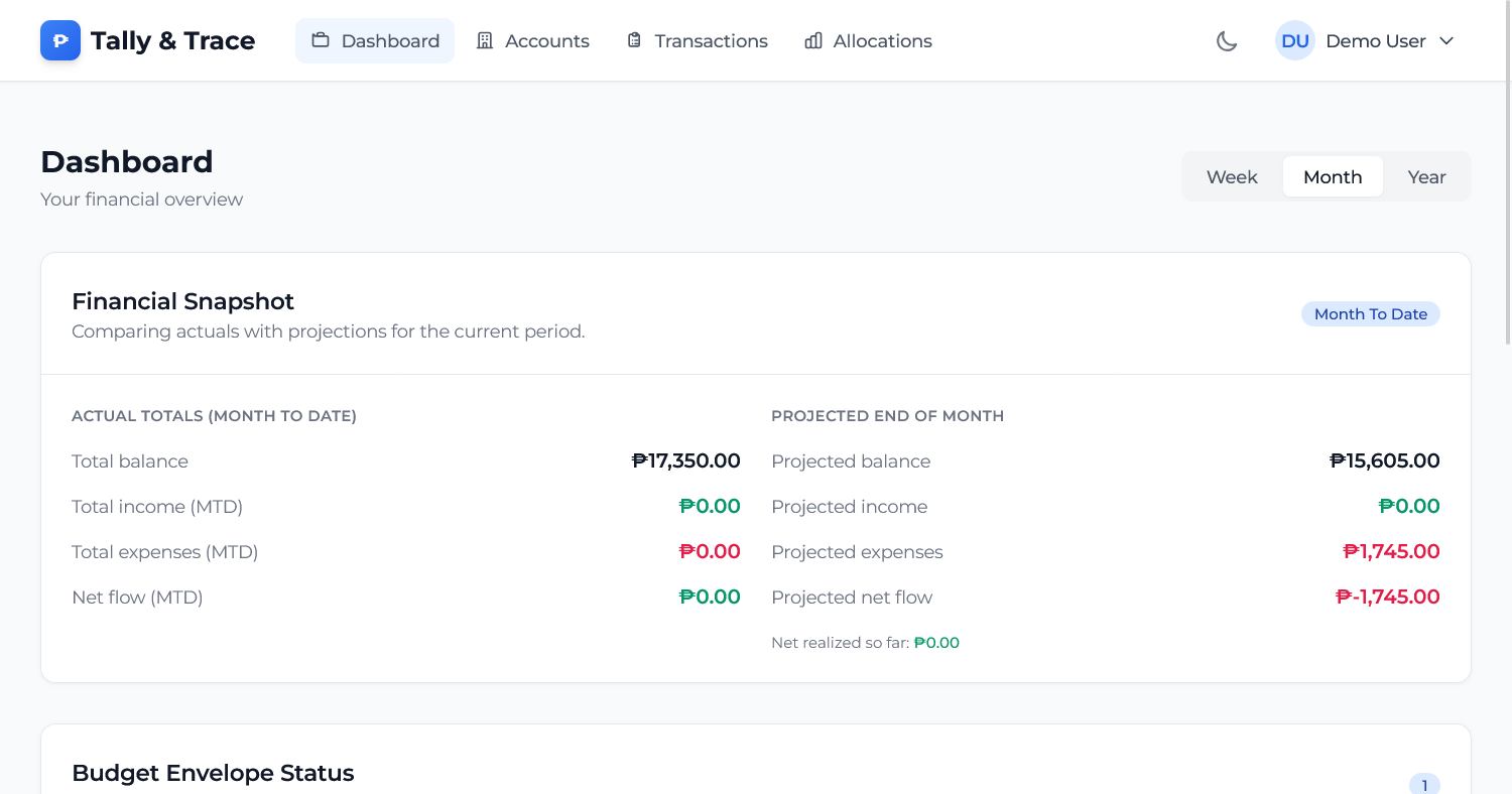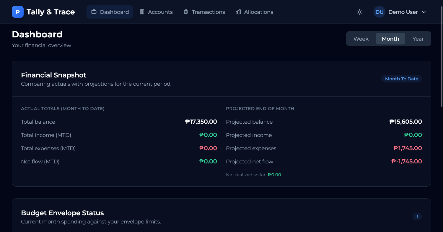 Tally And Trace was developed to solve our own need for a simple, flexible financial tracking tool that would replace our aging Google Sheet tracker. Existing solutions were either too complex, too expensive, or lacked the multi-entity support we needed to manage both personal and business finances in one place.